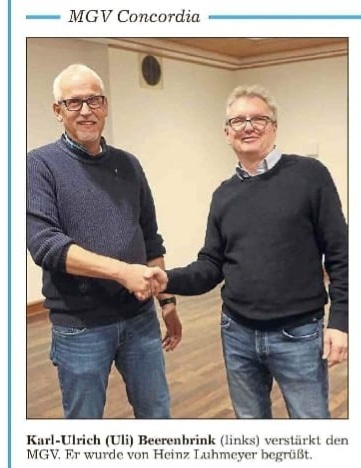 November 2022 Auszeichnung vom Chorverband NRW für 25 Jahre Mitgliedschaft im Männerchor Beelen "Ludger Havelt und Burkhard Werthenbach", begleitet von Sangesbruder Heinz Tegelkamp.